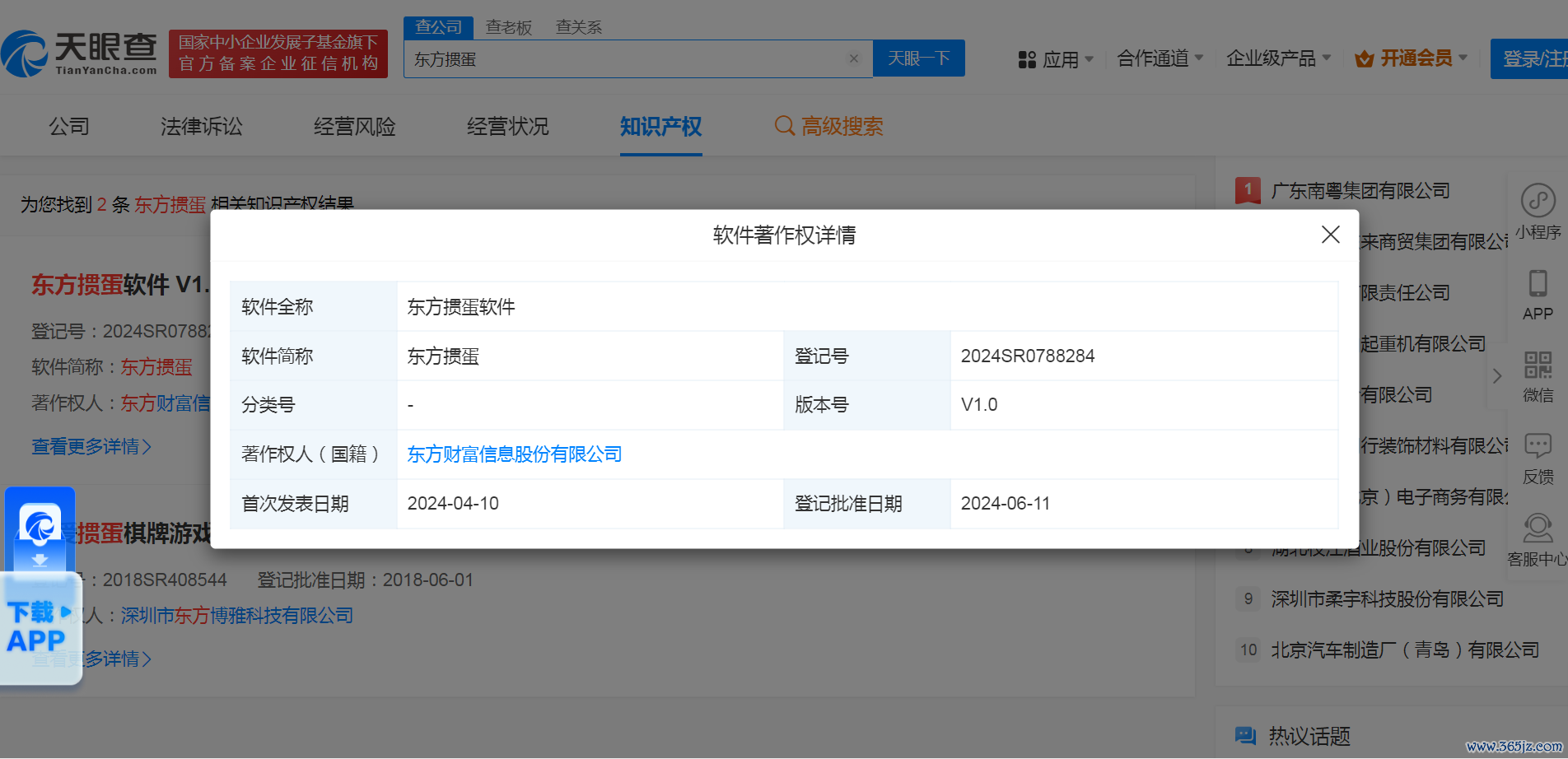 天眼查信息显示,东方财富于4月10日开发完成“东方掼蛋”软件V1.0版本,6月11日登记。今年以来,东方财富已新注册了14款软件。