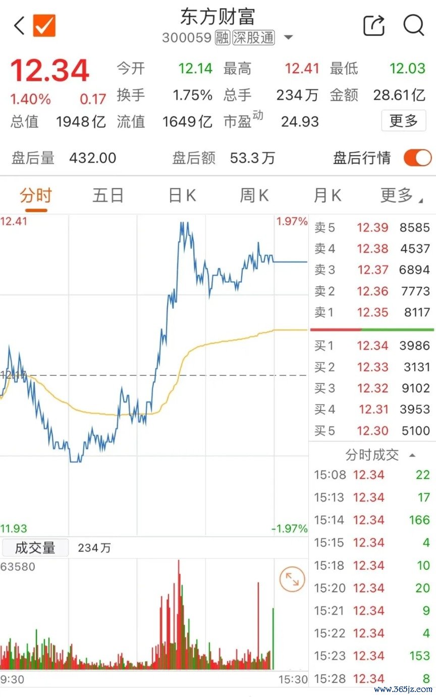 截至14日收盘,东方财富(300059.SZ,股价12.34元,市值1947.94亿元)股价为12.34元/股,最新总市值为1948亿元。
