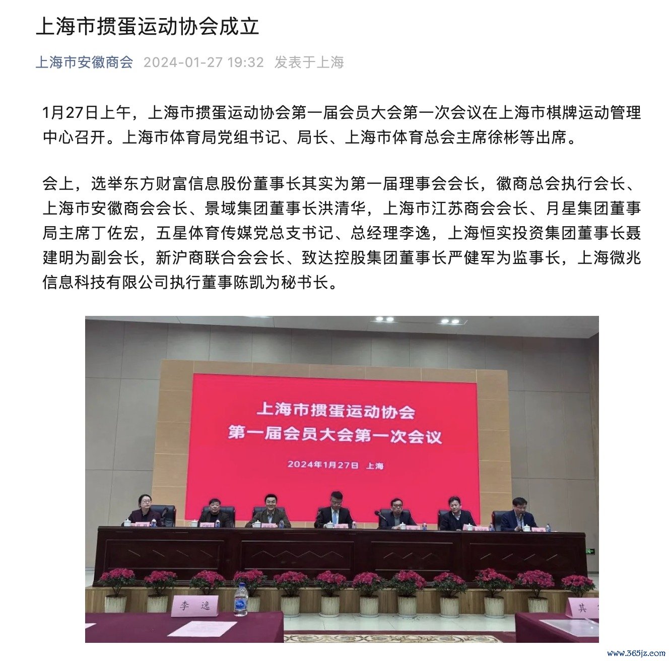上海市安徽商会公众号消息,1月27日上午,上海市掼蛋运动协会第一届会员大会第一次会议在上海市棋牌运动管理中心召开。上海市体育局党组书记、局长、上海市体育总会主席徐彬等出席。